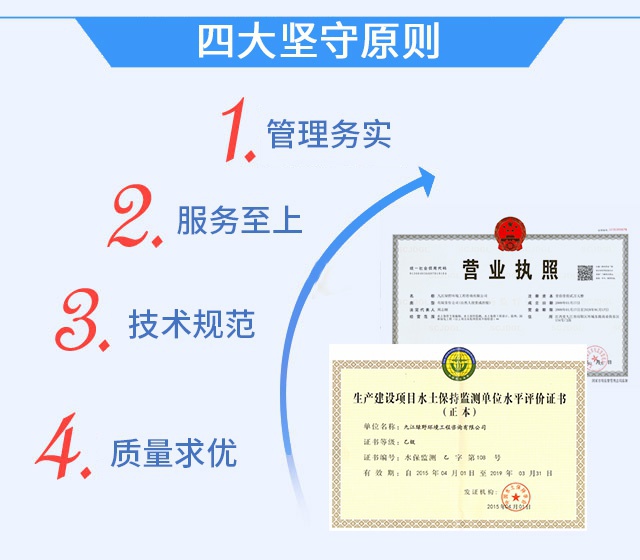 九江绿野环境工程咨询有限公司是中国水土保持学会会员单位之一,具有生产建设项目水土保持方案编制水平评价4星级资质和生产建设项目监测水平评价2星级资质。公司自2008年3月成立以来,在全体员工的敬业努力下,致力于为生产建设单位提供优质的水土保持专业技术服务和优质的项目水土保持前期报建服务,从水土保持技术咨询竭尽所能履行协议约定,并不断完善内部管理,力求做更优质更专业的公司。